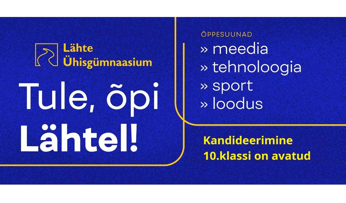 Koolis saab õppida tehnoloogia, looduse, spordi ja meedia õppesuundades. Detailsemate kirjelduste ja vastuvõtuinfo lugemiseks klõpsa lehele Vastuvõtt Lähte kooli.
